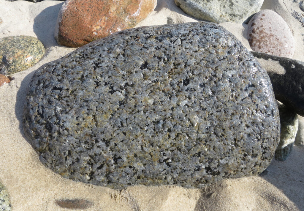 Das Oslogebiet in Südnorwegen beheimatet eine Vielfalt von Gesteinen mit besonderen Eigenschaften. Die Magmatite in dieser als Oslograben bezeichneten Gesteinsprovinz zeichnen sich durch einen hohen Alkaligehalt und vergleichsweise ungewöhnliche Gefüge aus. Vulkanite, Plutonite und Ganggesteine nehmen eine Fläche von etwa 200 x 60 km ein und entstanden im Zuge magmatischer Tätigkeit während der Öffnung eines Kontinentalgrabens im Karbon/Perm vor etwa 300 Millionen Jahren. Sie sind damit deutlich jünger als die proterozoischen Gesteine des benachbarten Grundgebirges. Eine Reihe von Oslo-Magmatiten ist als Geschiebe erkennbar, darunter Rhombenporphyr (Abb. 1) und Larvikit (Abb. 2) als wichtigste Leitgeschiebe.