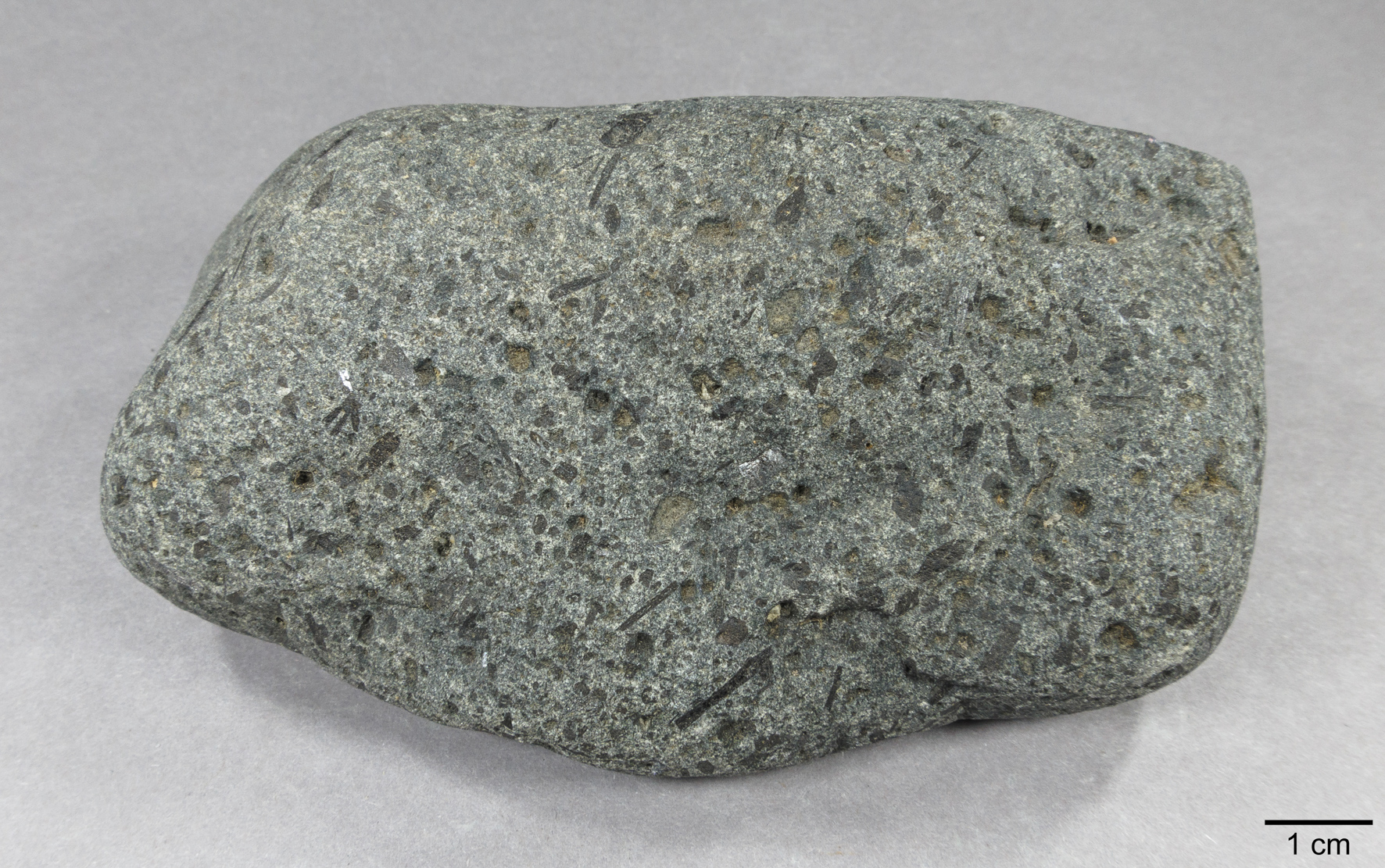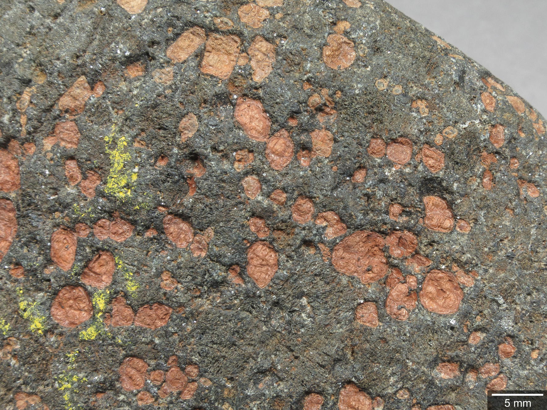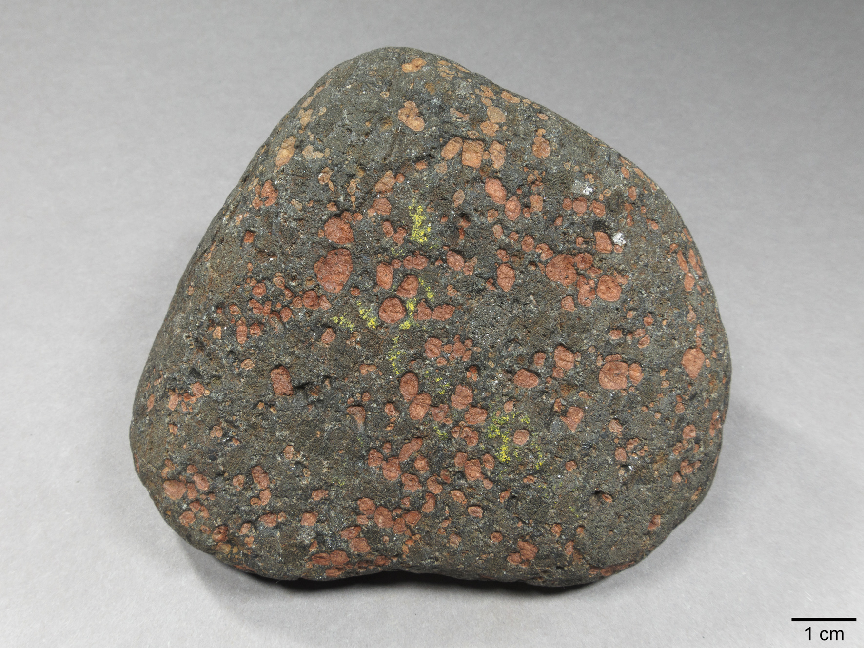 Abb. 7: porphyrischer Basit („Bojit“), Geschiebe von Storsand (NOR), trocken fotografiert, ex coll. H. Arildskov.