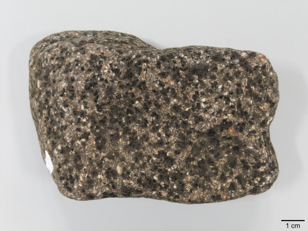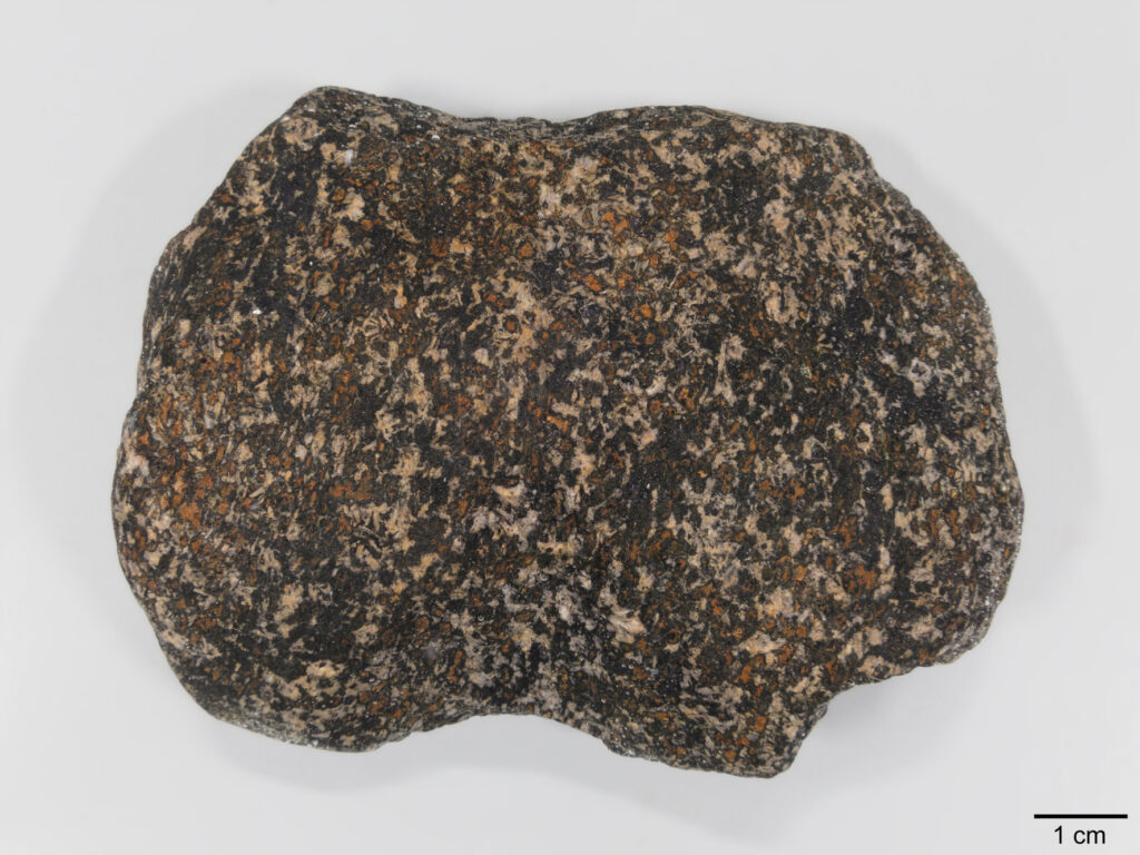 Abb. 4: grobkörniger Gabbro („Oslo-Essexit“), Geschiebe von Ryggkollen/Drammen (NOR), ex coll. H. Arildskov.