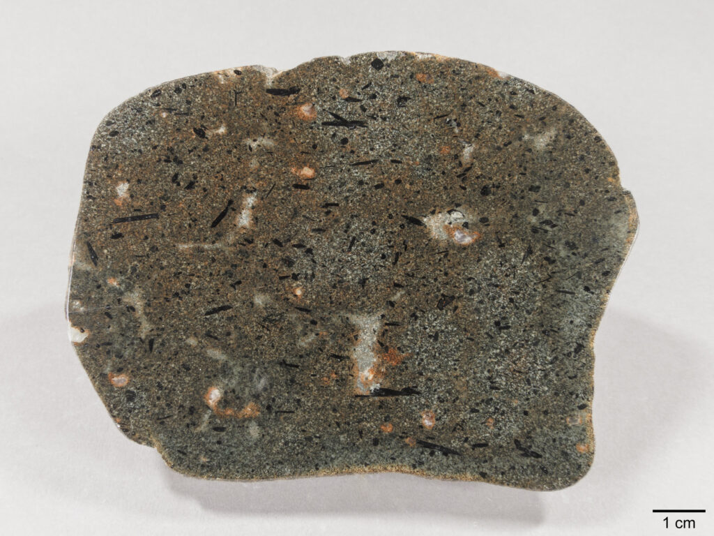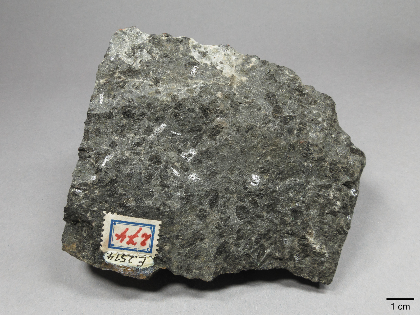 Abb. 3: Camptonit, Anstehendprobe von Maena (NOR), Westfuß von Brandberget, Kirchspiel Brandbu, leg. Finckh 1906, Slg. der BGR Berlin.