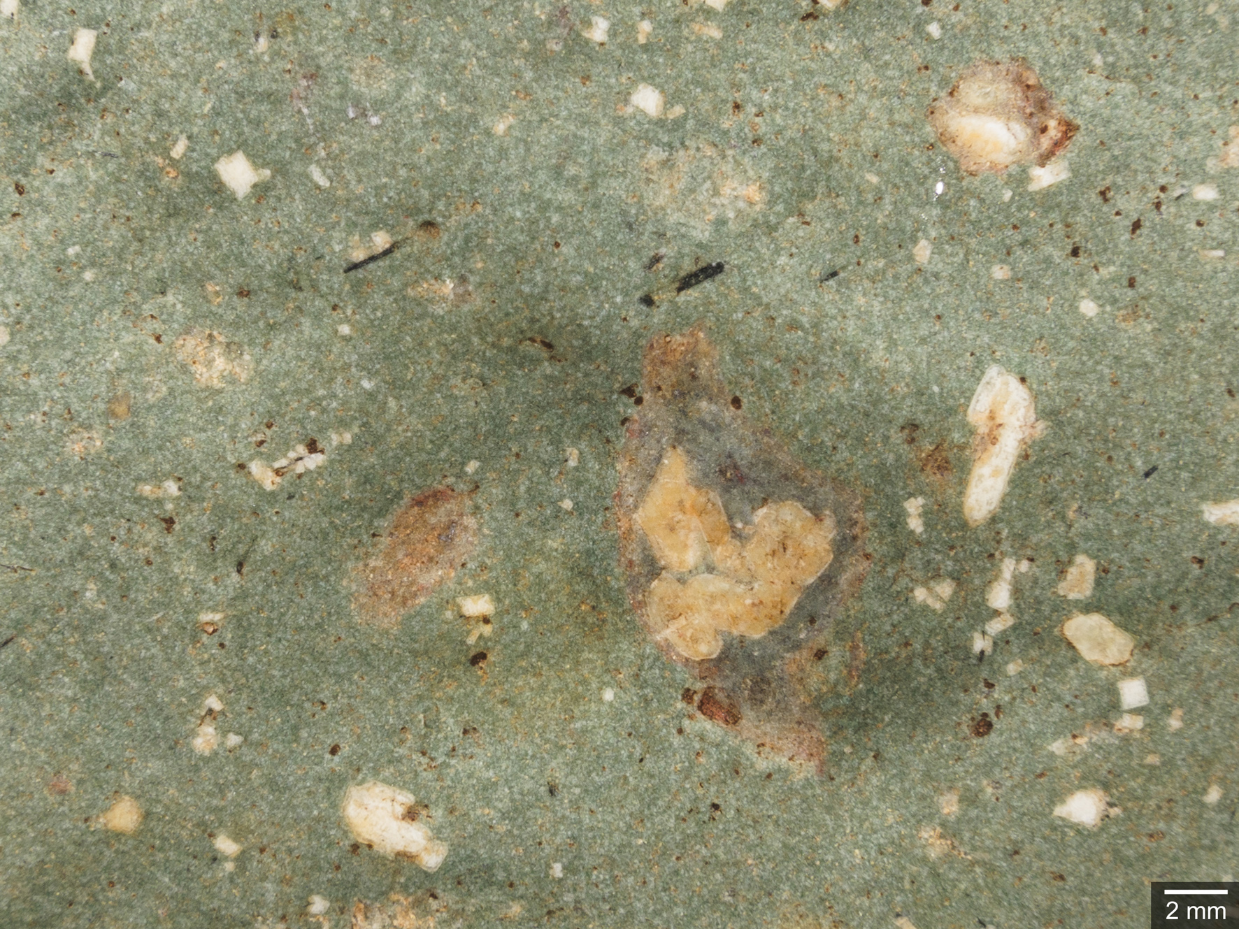 Abb. 23: In der Nahaufnahme sind undeutlich konturierte und helle, teils rötlich gefärbte Einschlüsse erkennbar.