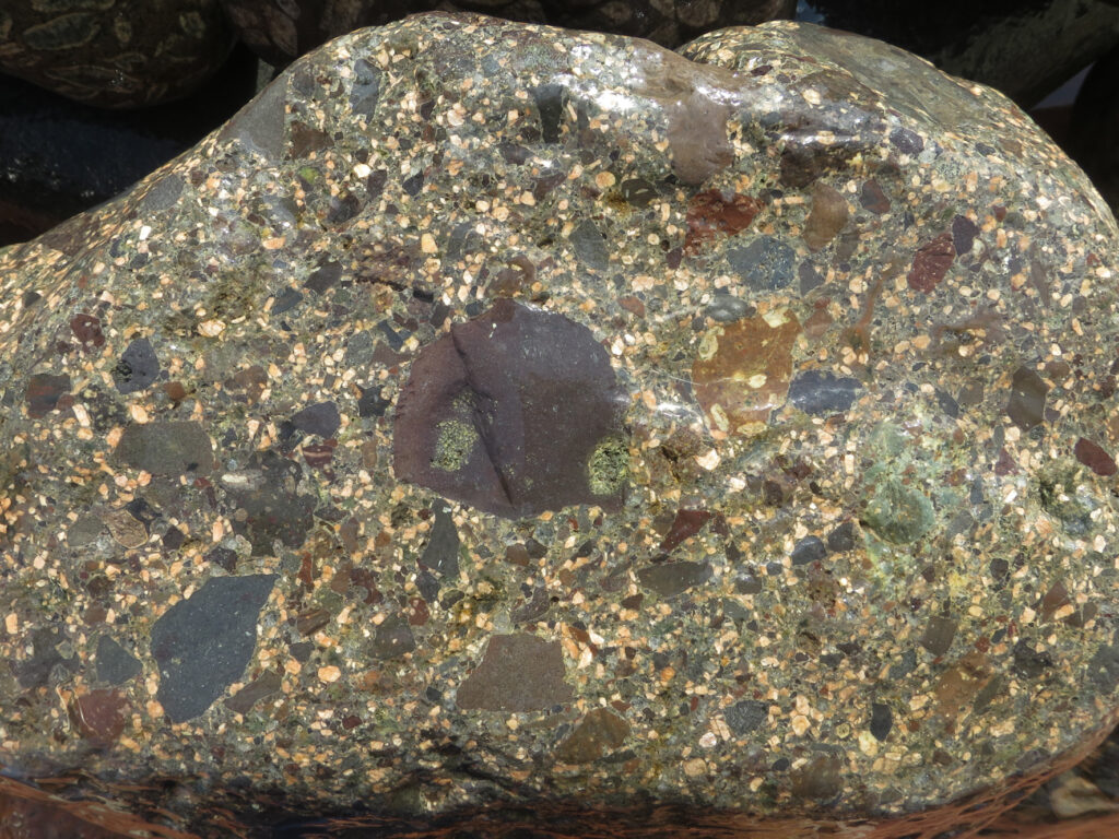 Abb. 31: Die Nahaufnahme zeigt Fragmente von rotem Syenitporphyr und porphyrischem Basalt.