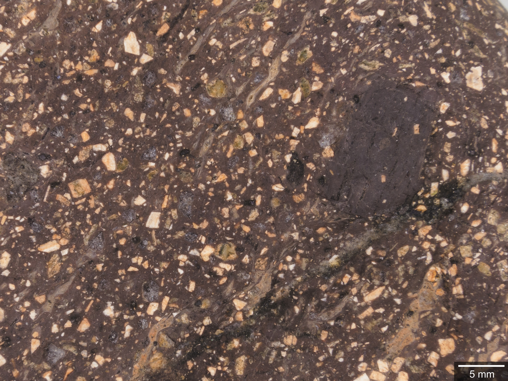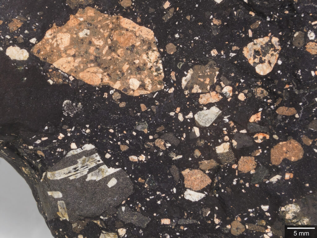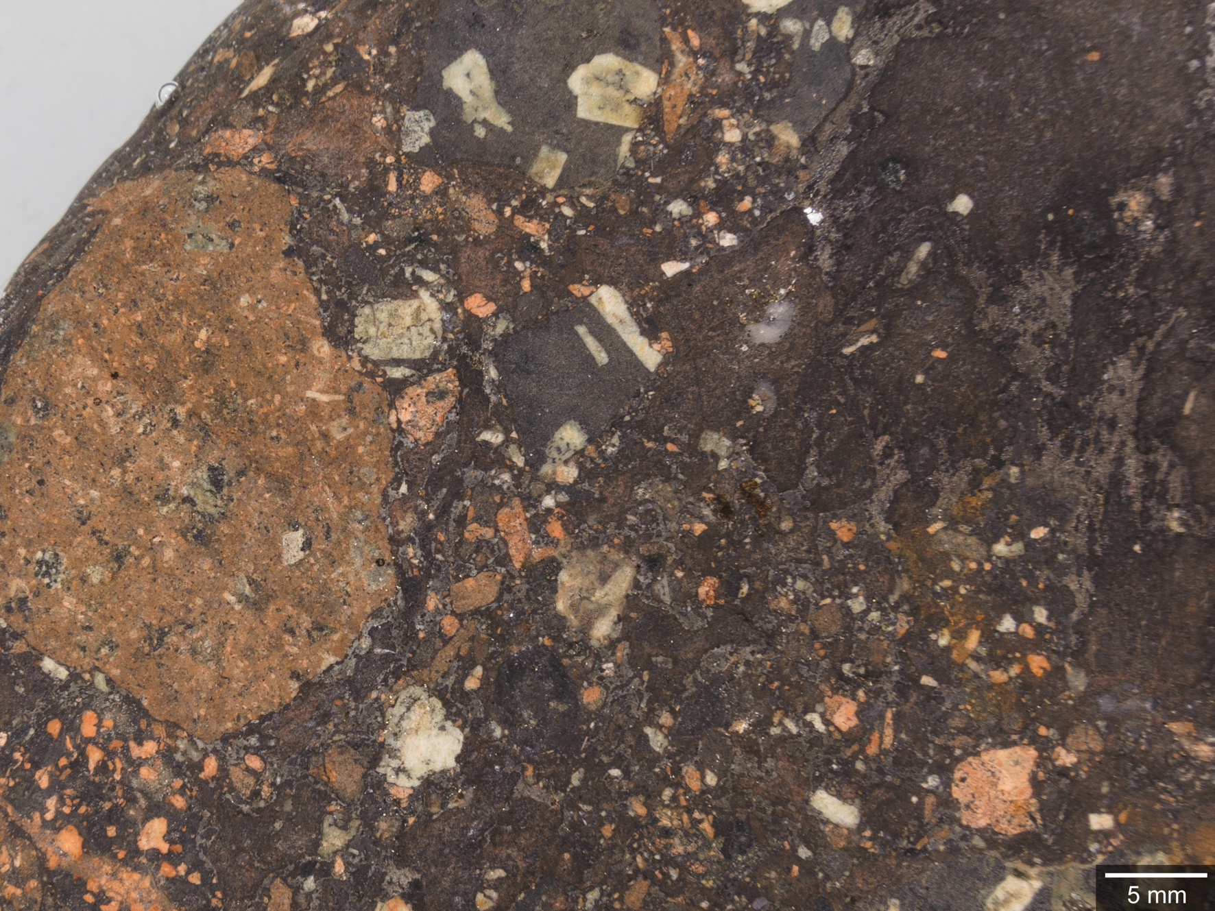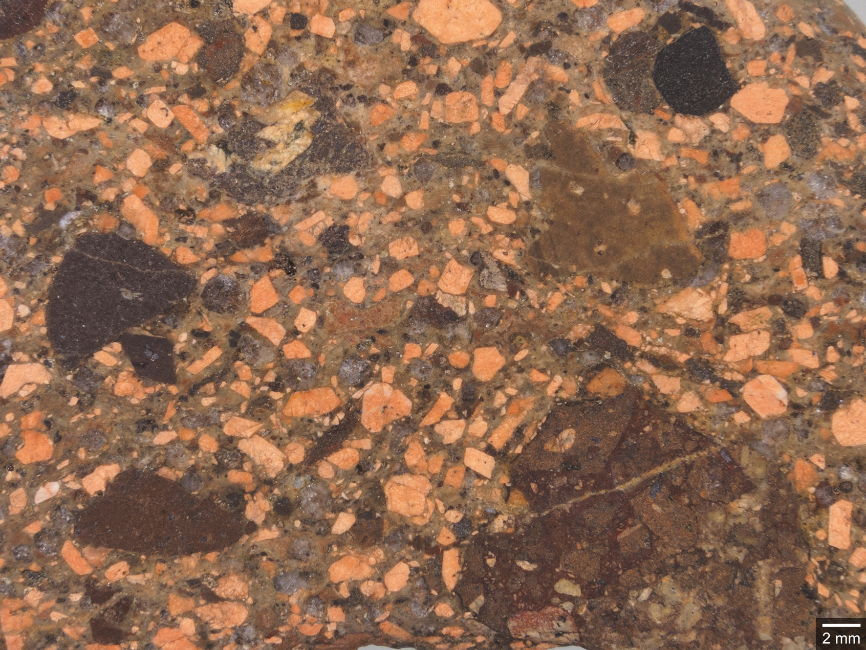 Abb. 19: Nahaufnahme; insbesondere die dunklen Gesteinsfragmenten weisen einen zonierten Saum auf.