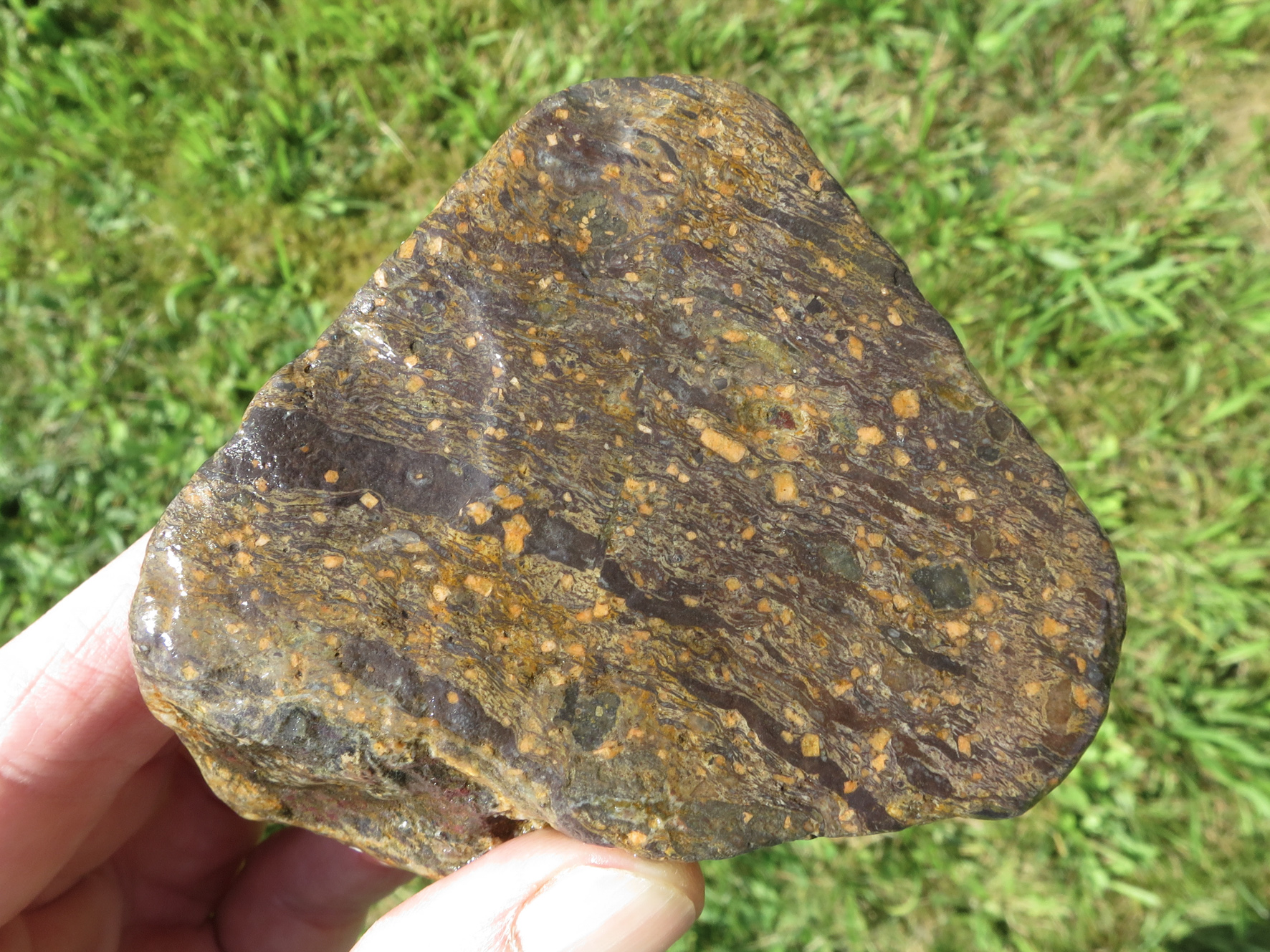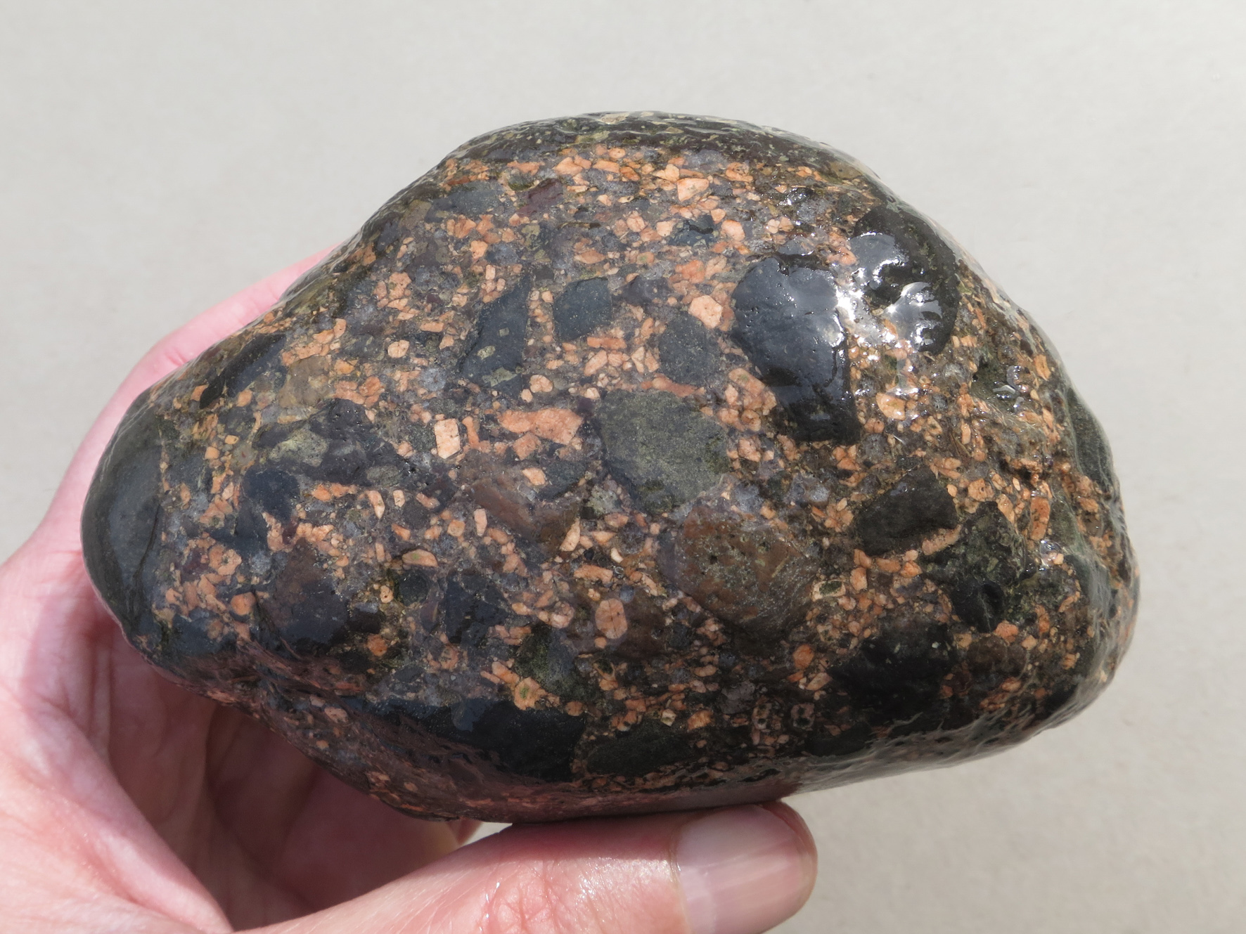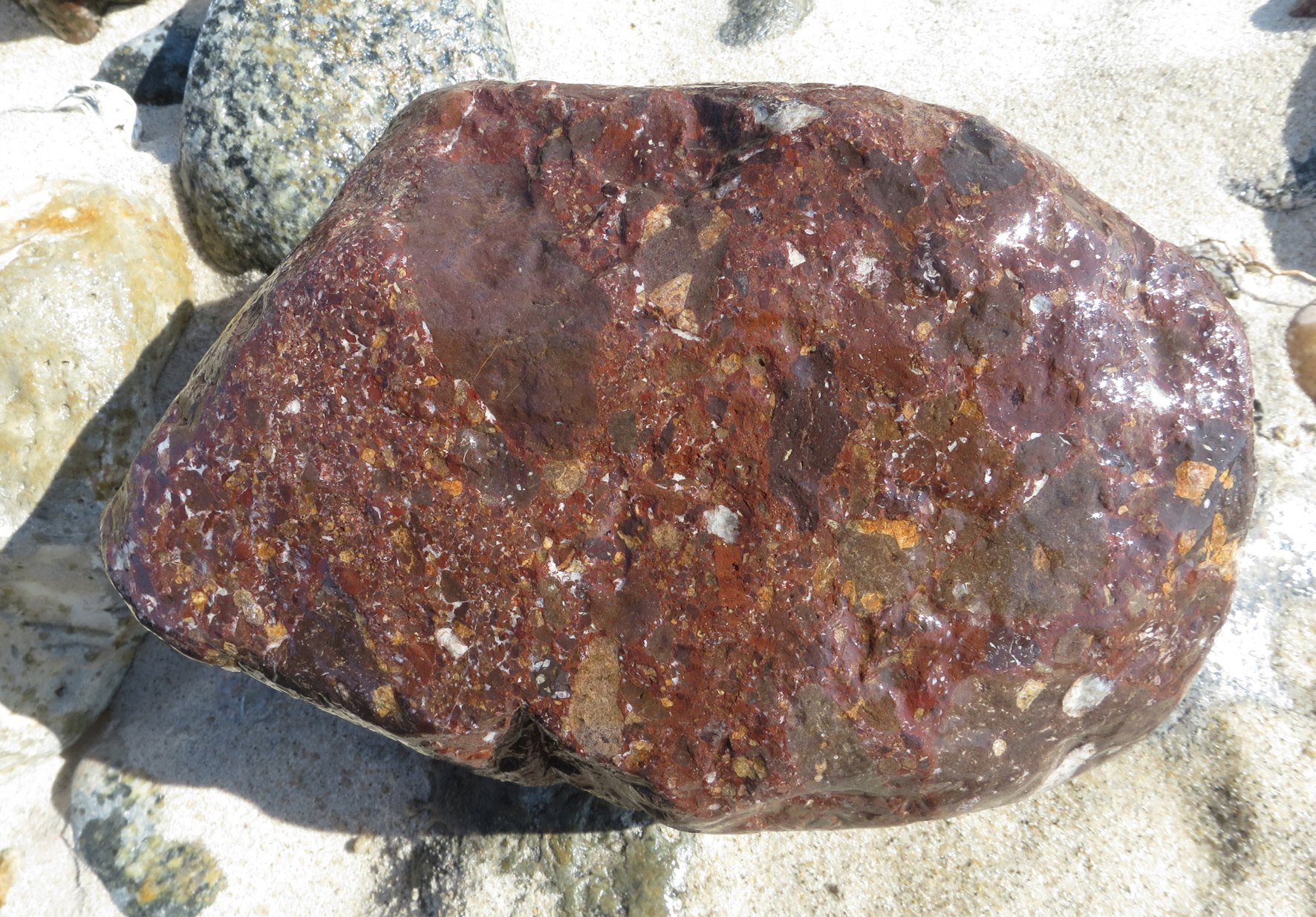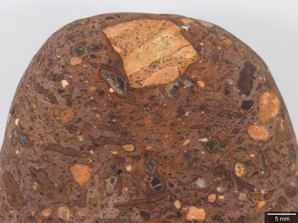 Abb. 11: Bordvika-Ignimbrit, mit hellbrauner Grundmasse und orangefarbenen Feldspat-Einprenglingen. Geschiebe von Steinvik (NOR), ex coll. H. Arildskov.