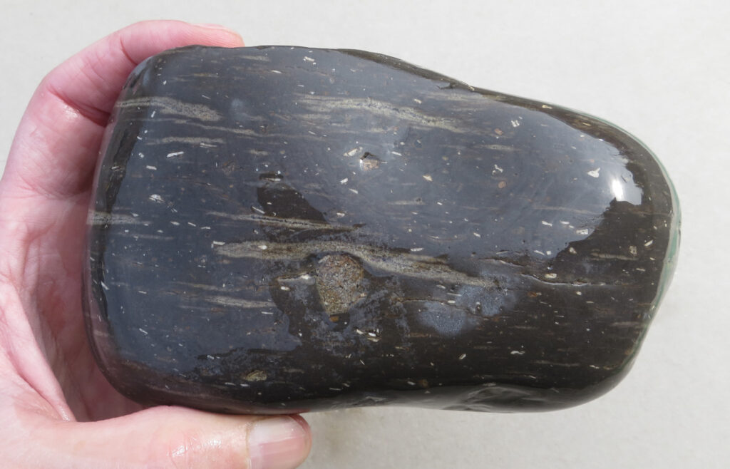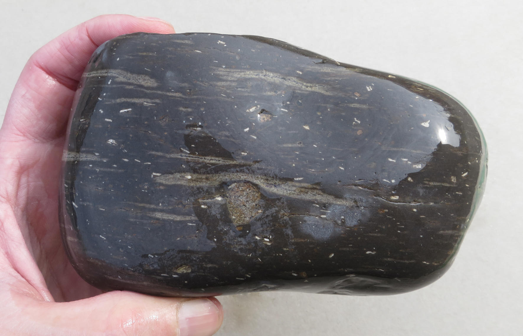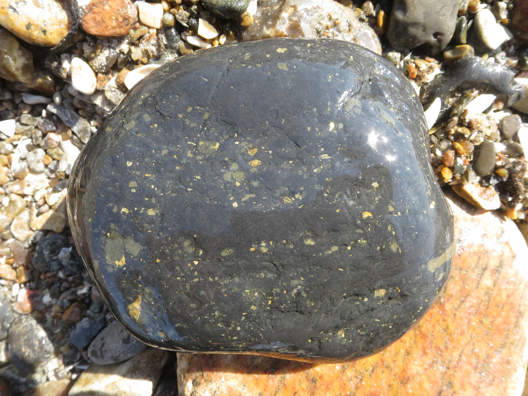 Abb. 30: schwarzer Oppkuven-Ignimbrit (?) mit dichter Grundmasse, Geschiebe von Tofte (NOR), Slg. F. Wilcke.