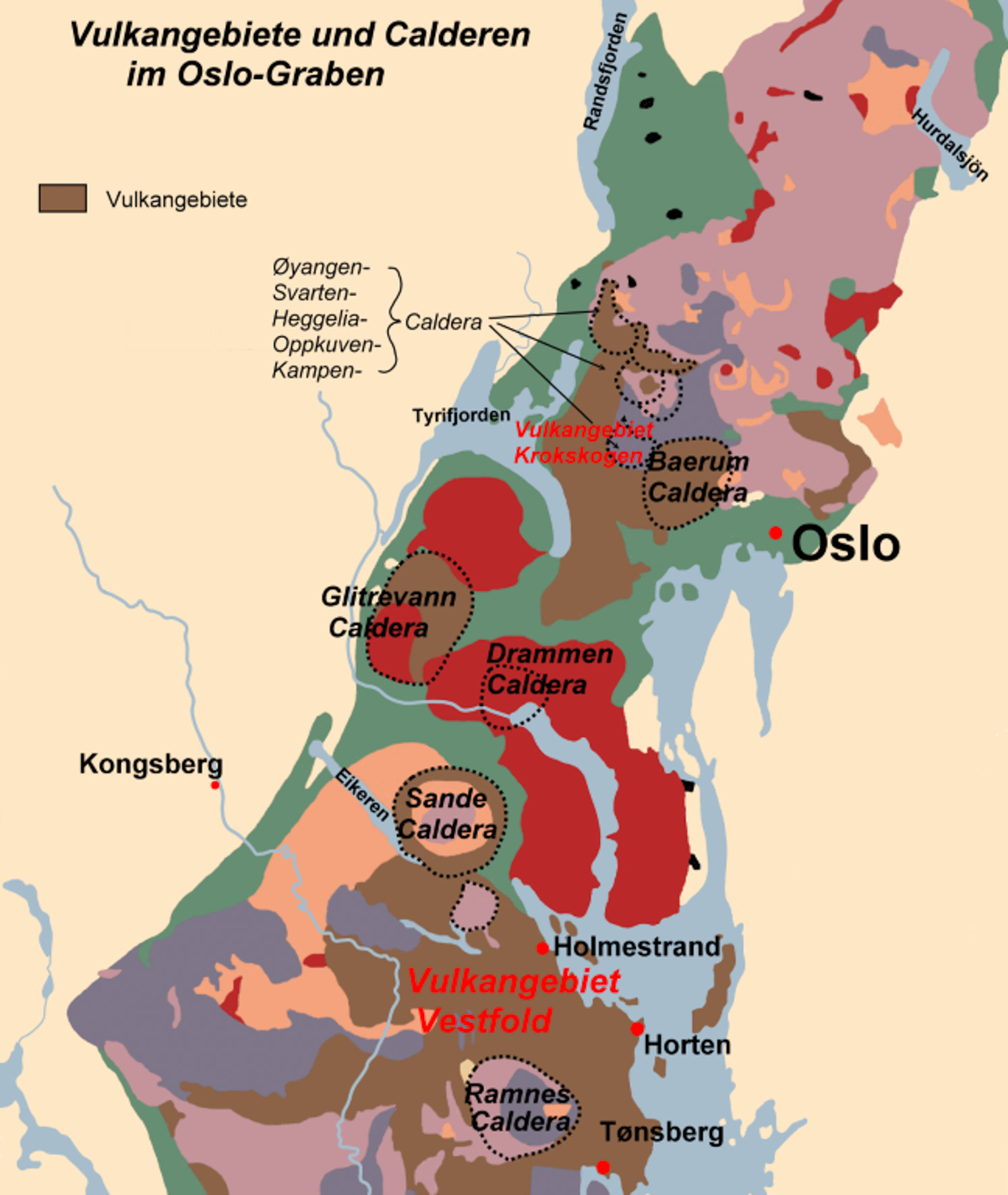 Abb. 3: Lage der Calderen im Oslogebiet, Karte aus skan-kristallin.de.