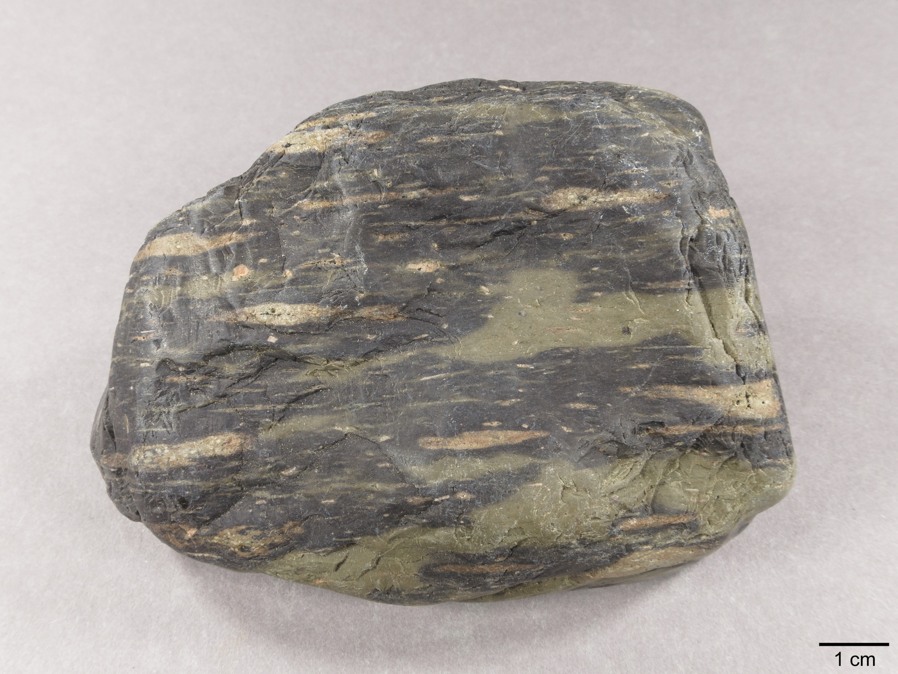 Abb. 25: Lathus-Ignimbrit mit markanter Fiamme, Breite 13 cm, Nahgeschiebe von Steinvik/Tofte (NOR), ex coll. H. Arildskov.